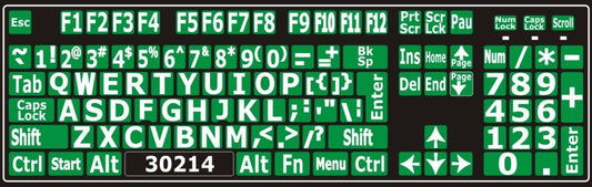 English (US) keyboard stickers for Windows: White on Green (Caps) - 30214