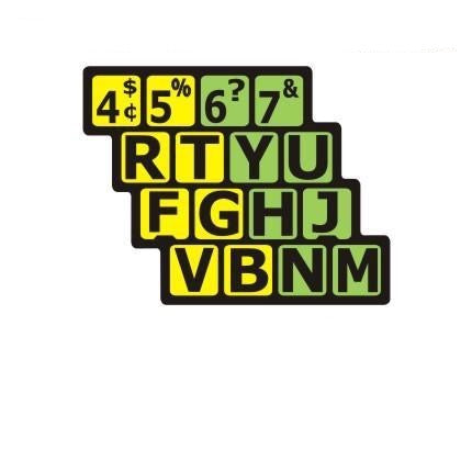 Stickers to divide keyboards left/right : black on yellow and white on green (Caps and Lowercase) - 30185