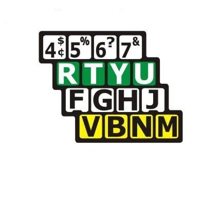 Stickers to divide keyboards left/right: black on yellow and black on green + blue vowels (Caps) - 30248