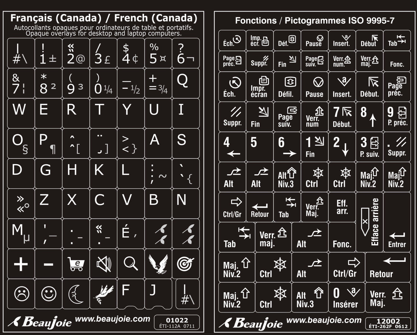 Get bilingual command keys on your Canadian-French keyboard for Windows. Featuring 143 stickers designed to make typing easier and increase the visibility of characters and symbols in both languages.