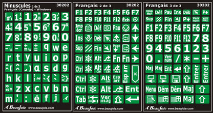 Canadian French keyboard stickers for Windows White on Green (Lowercase) - 30202