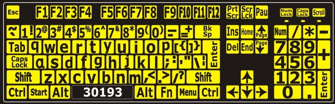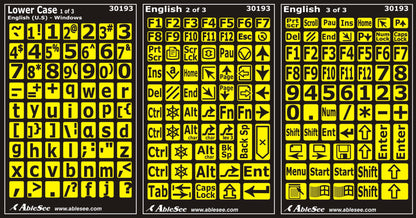 English (US) keyboard stickers for Windows: Black on Yellow (Lowercase) - 30193