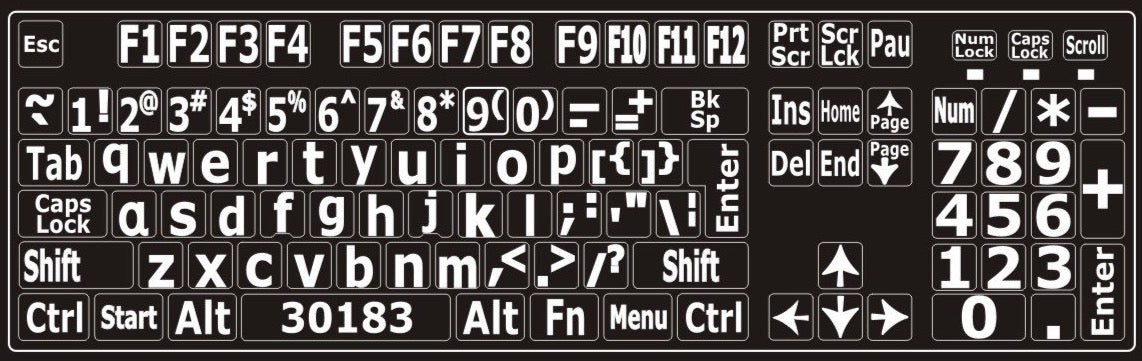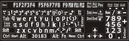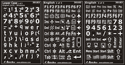 English (US) keyboard stickers for Windows: White on Black (Lowercase) - 30183