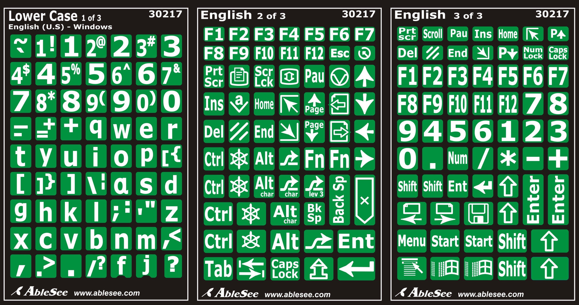 AbleSee offers a way to improve the visibility of your US English Windows keyboard. Options include adapted layouts with features such as row division and left/right division. We also provide effective color contrasts designed to enhance your typing speed and improve your overall keyboard experience.