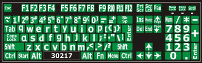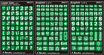 English (US) keyboard stickers for Windows: White on Green (Lowercase) - 30217