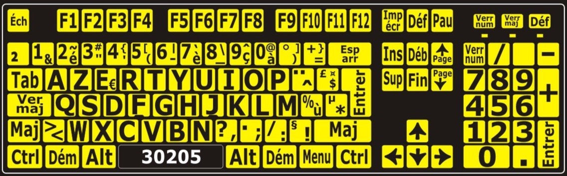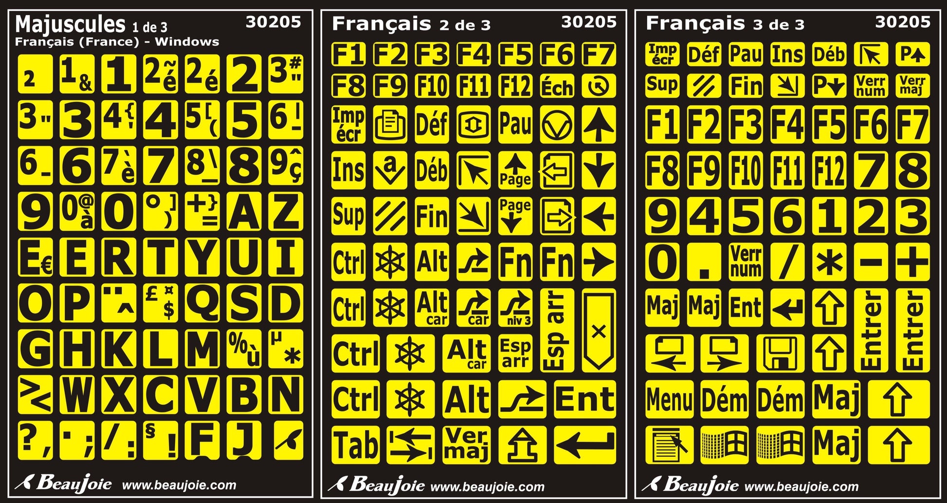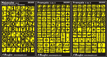 Keyboard stickers for French (France) Windows keyboard: Black on Yellow (Caps) - 30205
