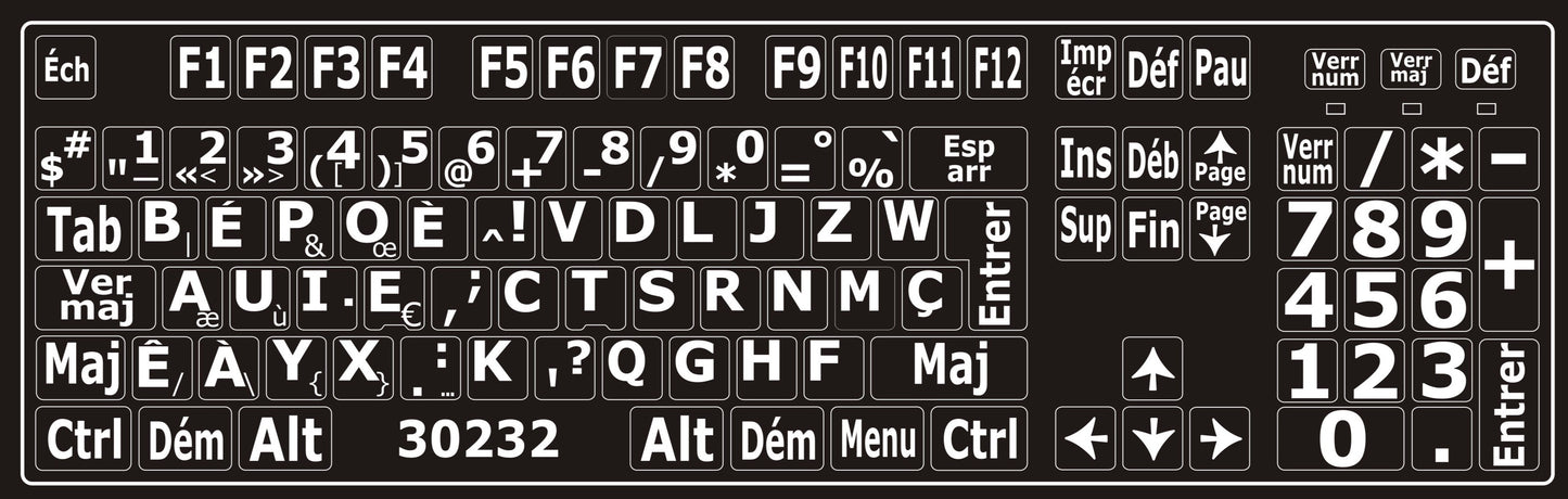 Keyboard stickers for BÉPO layout: Black on white (Caps) - 30232