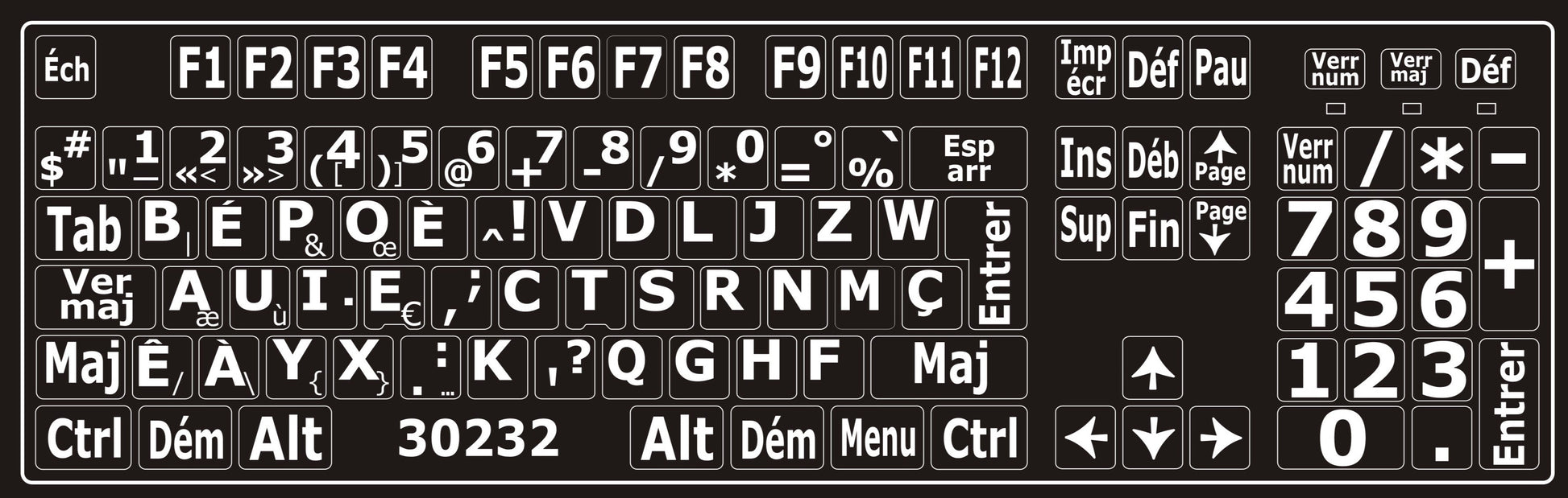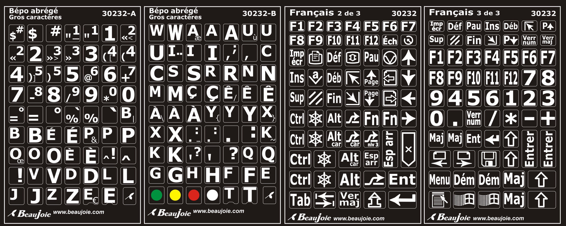 The BÉPO keyboard layout offers practical and ergonomic benefits for users with a range of needs (web developers, French users, and more). Increase the effectiveness of the BÉPO tool by adding stickers specifically adapted to the BÉPO layout. Stickers designed and manufactured to ensure the highest quality on the market.