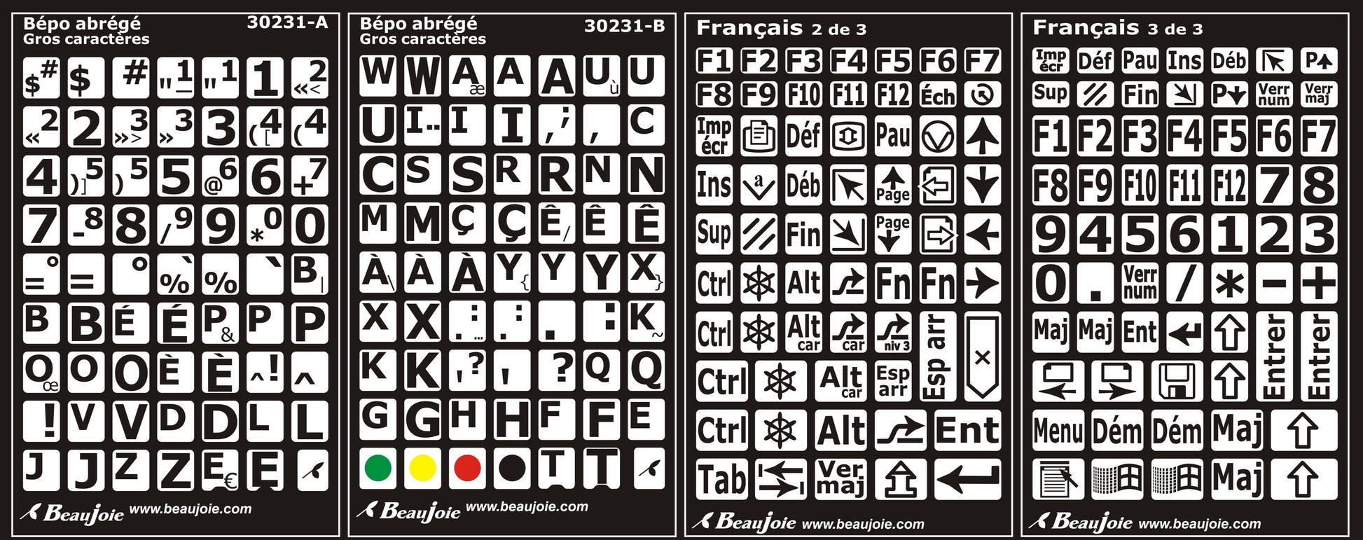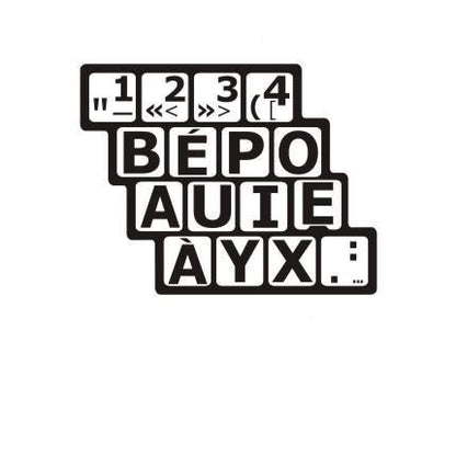 The BÉPO keyboard layout offers practical and ergonomic benefits for users with a range of needs (web developers, French users, and more). Increase the effectiveness of the BÉPO tool by adding stickers specifically adapted to the BÉPO layout. Stickers designed and manufactured to ensure the highest quality on the market.