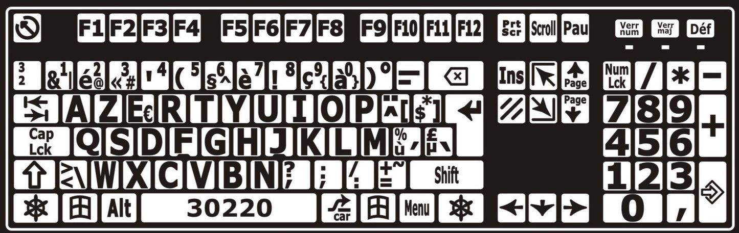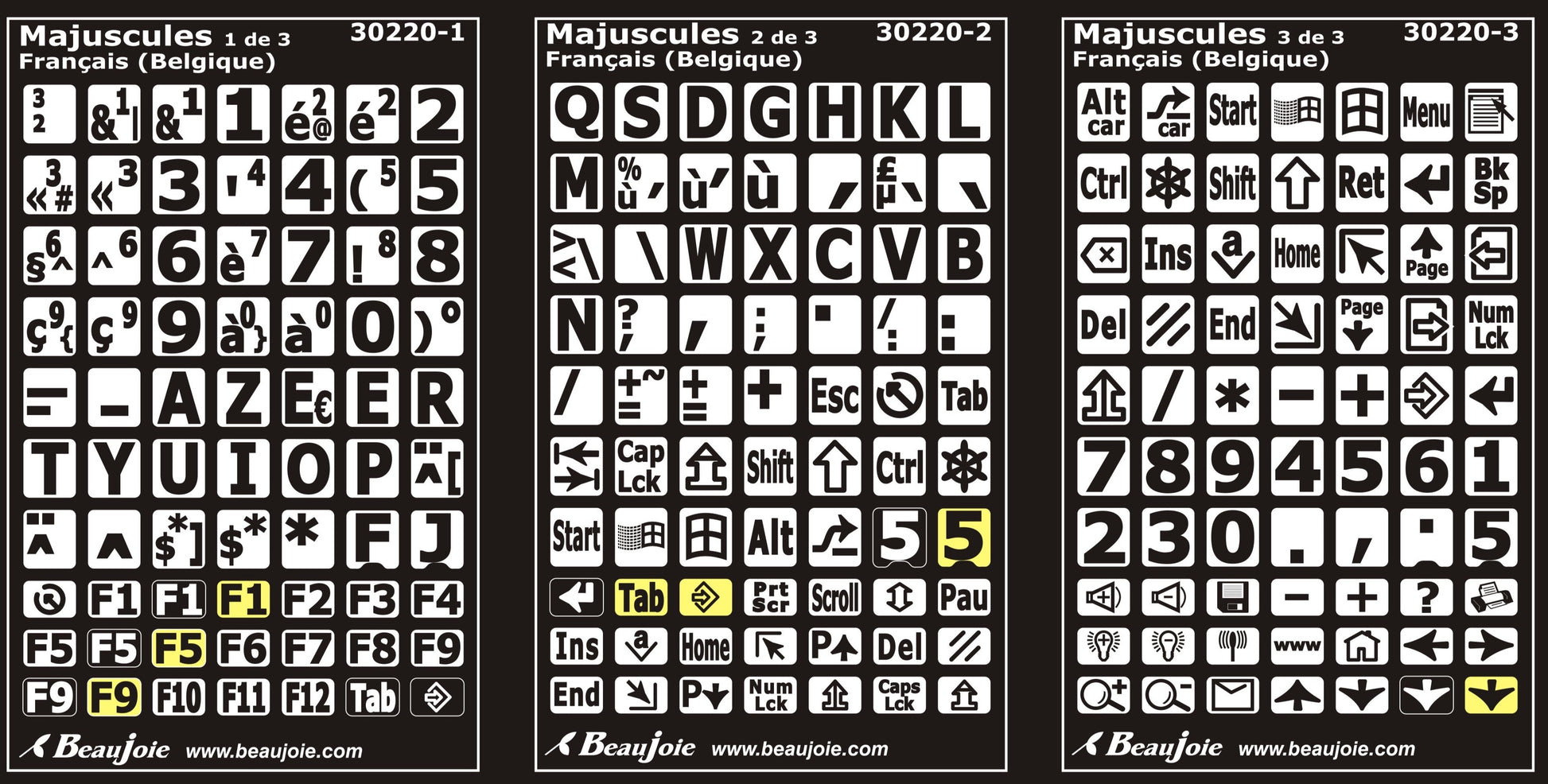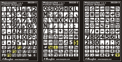 Keyboard stickers for French (Belgium) Windows keyboard: Black on White (Caps) - 30220