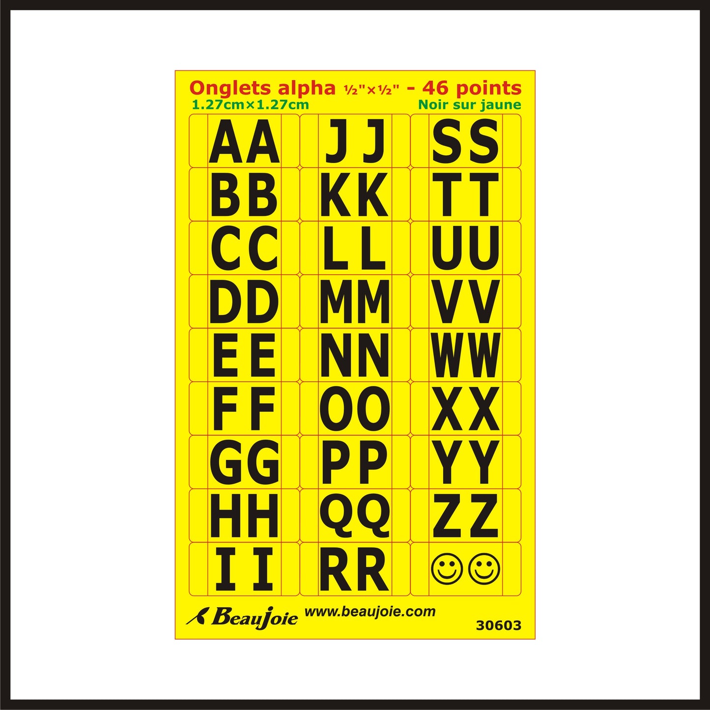 - Alphabetical tabs 1.27 cm X 1.27 cm