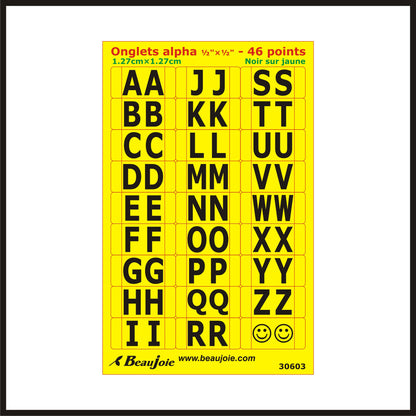 Alphabetical tab stickers - Black on yellow 30503