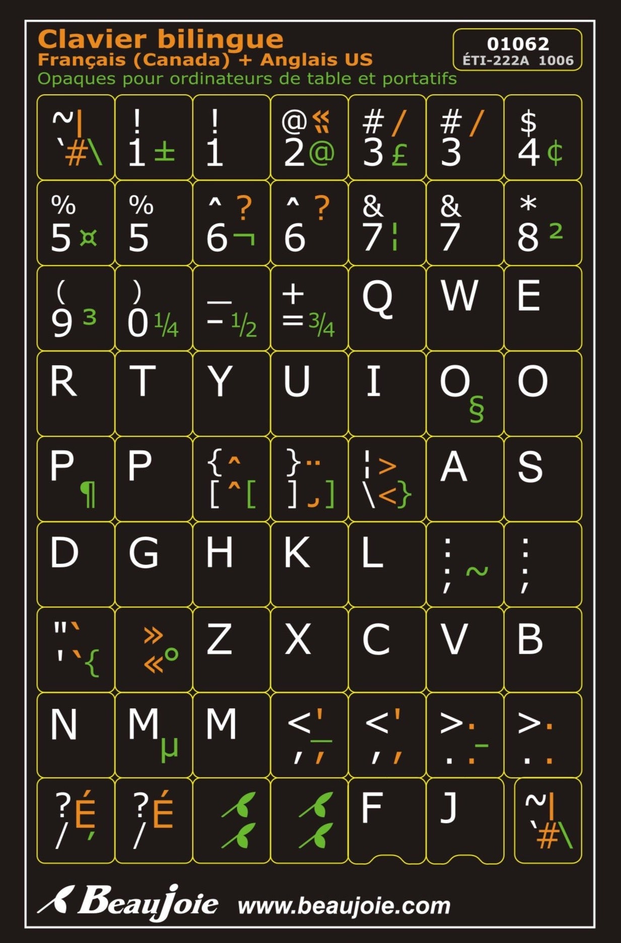 Get bilingual function keys on your multilingual Canadian keyboard for Windows. Featuring 63 stickers designed to make typing easier and increase the visibility of ACNOR keyboard symbols.