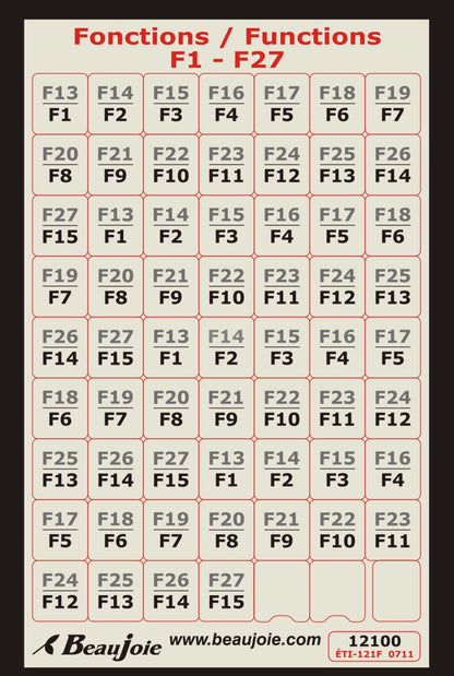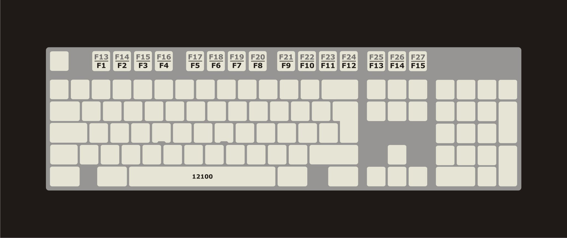 Stickers for keys F1 to F27: Black + gray functions on beige - 12100