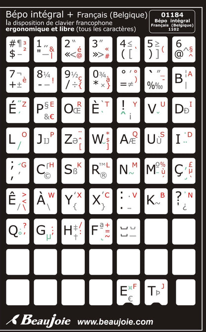 Stickers for the main part of the full French (Belgium) BÉPO keyboard - 01184