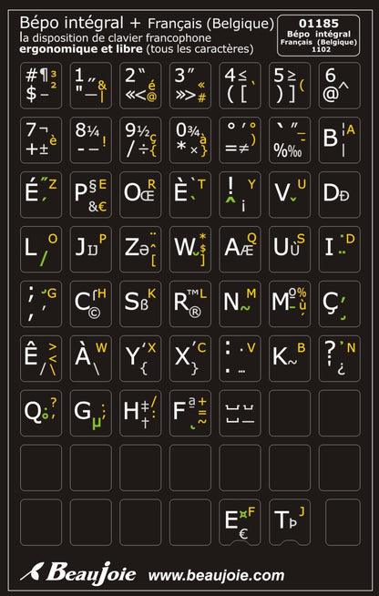 Stickers for the main part of the partial French (Belgium) BÉPO keyboard - 01185
