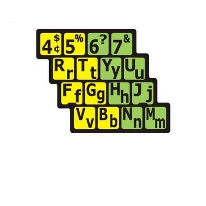 Stickers to divide keyboards left/right : black on yellow and black on green (Lowercase and Caps) - 30237
